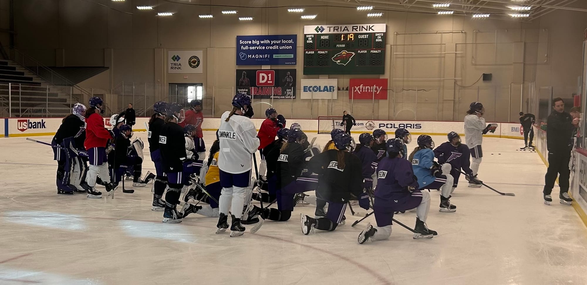 You wouldn't have heard it standing outside the Treasure Island building on Monday afternoon, observing the ordinary bustle of downtown St. Paul. But, if you took a short elevator ride up to the Tria Rink on the fifth floor, where the Minnesota Frost held their first full team practice, the energy was evident the moment the elevator doors opened; the defending champs are happy to be back.