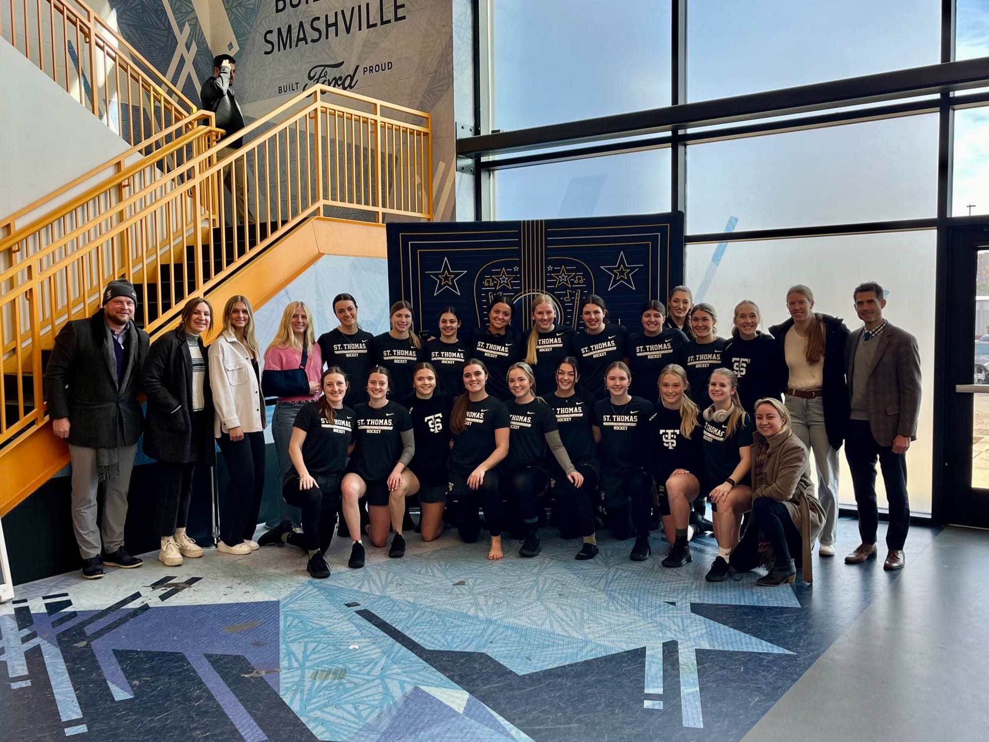 Joining the Tommies staff also provided her with a new challenge. Brausen thought if she stayed with Minnesota, a program she loved and enjoyed being part of, then she would be staying in her comfort zone. Joining St. Thomas meant building the program and understanding that that process would take a few years. Still, she decided to join the brand new program. “I remember thinking… I don't want to recruit against St. Thomas because they are so uniquely different,” Brausen said. “That was a big part of it too, was seeing more of a visionary lens of where they would be one day. I wasn't sure if that would be in year four [or] year six or seven, but it was something I knew I wanted to be a part of.”