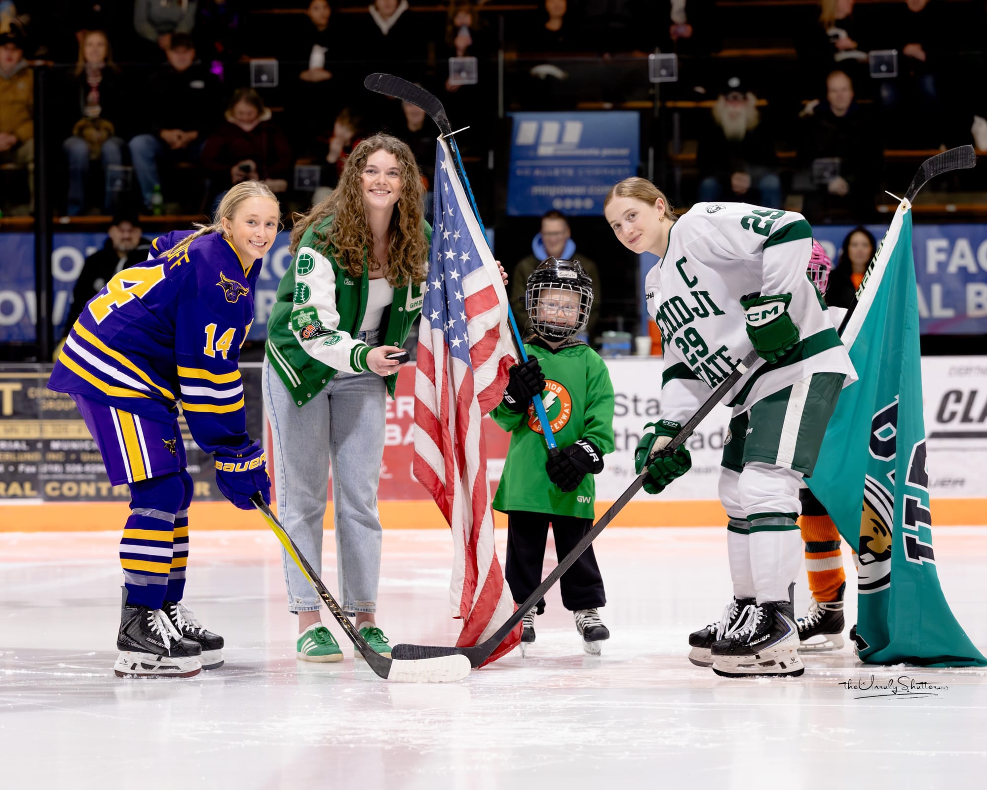 Bemidji State and Minnesota State also took part in a game at a cool location in the U.S. Hockey Hall of Fame Women's Faceoff Classic for their weekend finale on Jan. 31. The teams played at Yanmar Arena in Grand Rapids and Bemidji State put on a show by upsetting 13th ranked Mankato with a 2-1 win. The best part of the game? Former Beaver and Maverick Claire Vekich took part in the ceremonial puck drop.